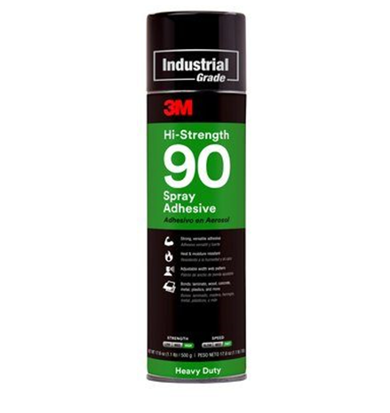3M 90 is our most popular spray adhesive. It is an extremely versatile, fast-drying spray adhesive that bonds strongly to a wide range of materials. The permanent bond provides quick results to keep projects moving forward. The spray formula is easy to dispense, offering a variable-width spray pattern, and applies directly onto surfaces and materials where needed. We recommend to use the adhesive with our heel pads to glue down to the carpet but it will also bond wood, laminate, concrete, metal, plastic and more.